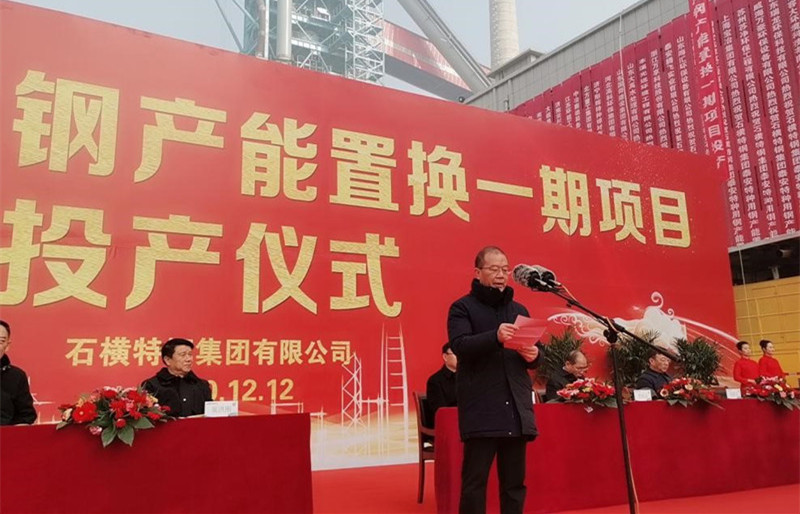 12月12日,董事長魏新民出席泰安特種用鋼產能置換一期項目投產儀式并致辭。
